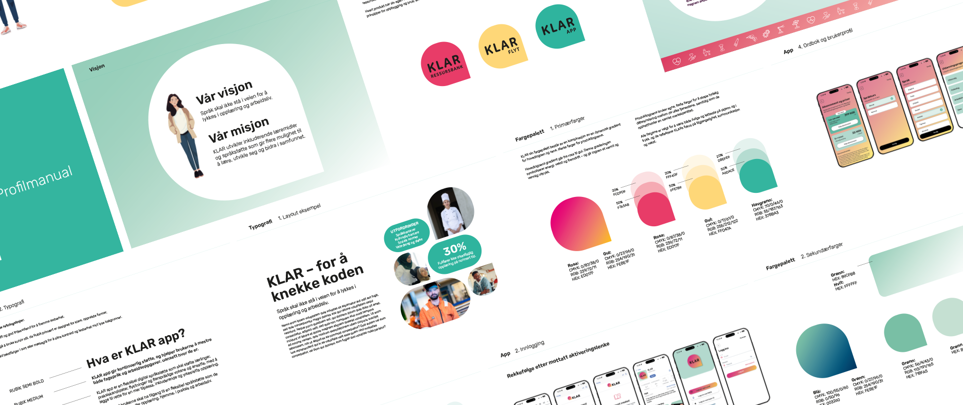 Resultatet er en gjenkjennelig identitet og et appdesign som speiler KLAR kompetanse sitt arbeid med språkstøtte og styrker deres posisjon i markedet.